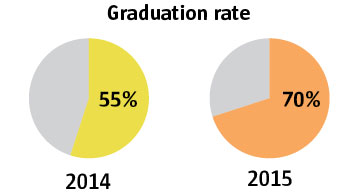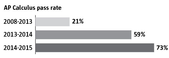 After several years of administrative turmoil, Foster High School has been posting gains in its math scores and graduation rates. Last year, its calculus students outscored their peers across the nation on the Advanced Placement Exam. The school’s graduation rate improved dramatically, although it still lags the state average of 77 percent.